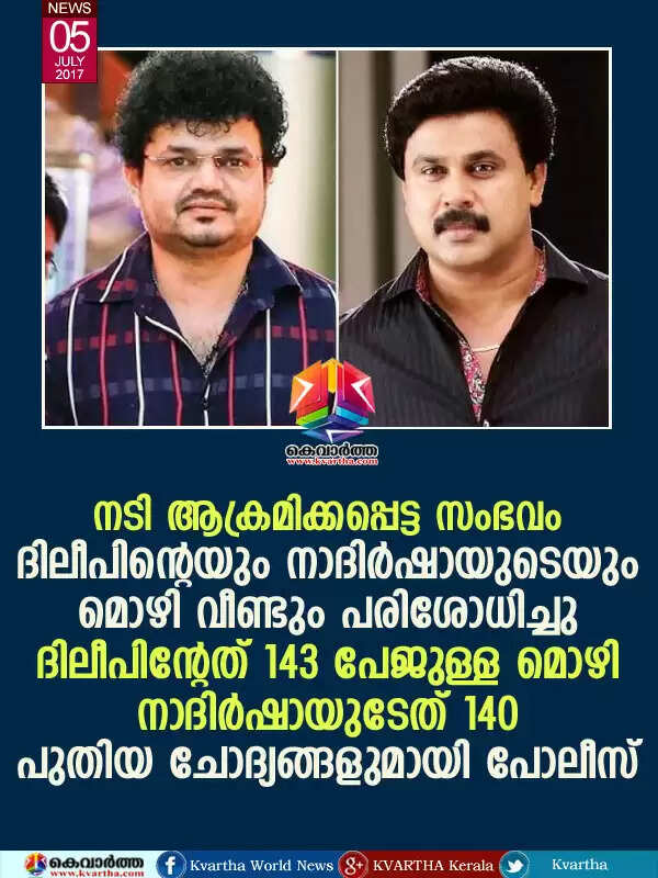നടി ആക്രമിക്കപ്പെട്ട സംഭവം; ദിലീപിന്റെയും നാദിര്ഷായുടെയും മൊഴി വീണ്ടും പരിശോധിച്ചു, ദിലീപിന്റേത് 143 പേജുള്ള മൊഴി, നാദിര്ഷായുടേത് 140 ; പുതിയ ചോദ്യങ്ങളുമായി പോലീസ്