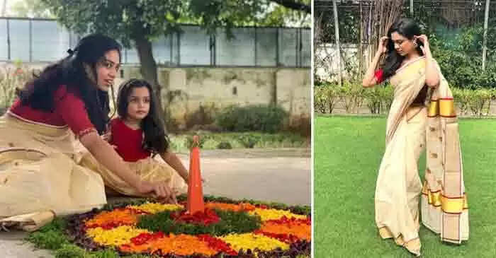 Keywords: Meenakshi Dileep celebrates Onam with Mahalakshmi; Pictures, Kochi, News, ONAM-2021, Daughter, Dileep, Cinema, Kerala, Social Media.