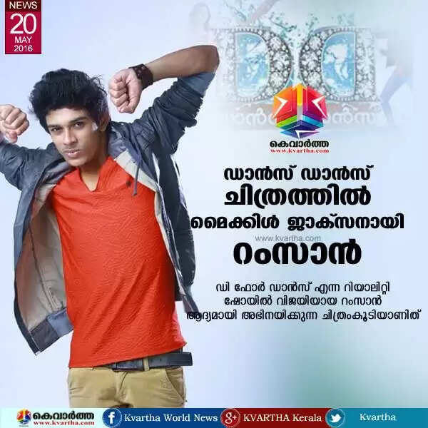 കൊച്ചി: (www.kvartha.com 20.05.2016) ഡാന്സ് ഡാന്സ് ചിത്രത്തില് മൈക്കിള് ജാക്സനായി റംസാന് എത്തുന്നു. ഒരു ഇടവേളയ്ക്കുശേഷം നിസാര് സംവിധാനം ചെയ്യുന്ന ചിത്രത്തില് പുതുമുഖം റംസാന് മൈക്കിളായി കേന്ദ്രകഥാപാത്രത്തെ അവതരിപ്പിക്കുന്നു. ഡി ഫോര് ഡാന്സ് എന്ന റിയാലിറ്റി ഷോയില് വിജയിയായ റംസാന് ആദ്യമായി അഭിനയിക്കുന്ന ചിത്രംകൂടിയാണിത്. മൂന്നു പുതുമുഖ നായികമാരാണ് ഈ ചിത്രത്തിലുള്ളത്. റോഷ്ണി സിംഗ്, ഐശ്വര്യ, അനിഘ, സുരാജ്, വിജയരാഘവന്, കലാഭവന് ഷാജോണ്, ഗണേഷ് കുമാര്, സുധീര് കരമന, മന്രാജ്, കോട്ടയം പ്രദീപ്, സുനില് സുഖദ തുടങ്ങിയവര് അഭിനയിക്കുന്നു.