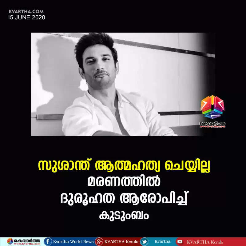 'സുശാന്ത് ആത്മഹത്യ ചെയ്യില്ല'; മരണത്തില് ദുരൂഹത ആരോപിച്ച് കുടുംബം