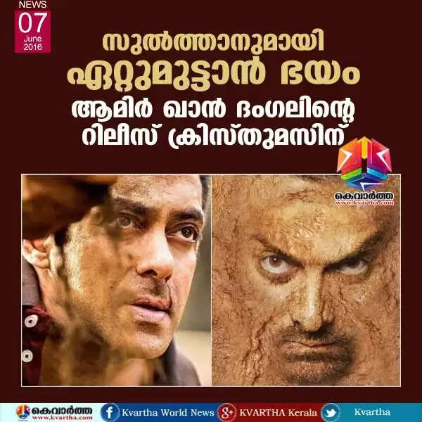 ഇപ്പോഴിതാ സല്മാന് ഖാന്റെ സുല്ത്താനെ ഭയന്ന് ദംഗലിന്റെ റിലീസ് ആമിര് വൈകിപ്പിക്കുമെന്ന സൂചനയാണ് ലഭിക്കുന്നത്. ഈദിന് സുല്ത്താന് തീയേറ്ററുകളിലെത്തും. എന്നാല് ദംഗല് ക്രിസ്തുമസിന് റിലീസ് ചെയ്യുമെന്നാണ് സൂചന.
