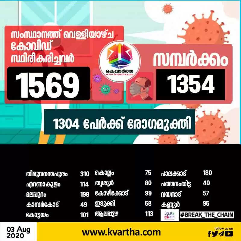 Keywords: 1569 Corona case confirmed in Kerala Today, Health Minister, Thiruvananthapuram, News, Health, Health and Fitness, Hospital, Treatment, Kerala.