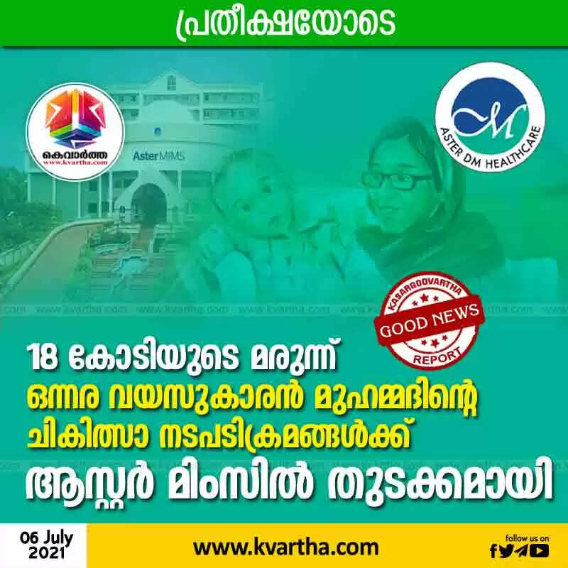 Keywords: 18 crore drug, one and a half year old Mohammad's medical procedures started at Aster Mims, Kozhikode,News,Health,Health and Fitness,Hospital,Treatment,Kerala.