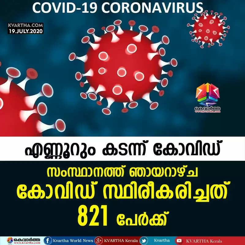 എണ്ണൂറും കടന്ന് കോവിഡ്; സംസ്ഥാനത്ത് ഞായറാഴ്ച സ്ഥിരീകരിച്ചത് 821 പേര്ക്ക്