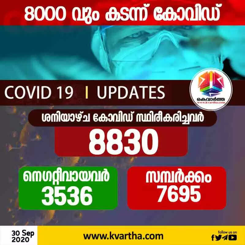 8000വും കടന്ന് കൊറോണ: സംസ്ഥാനത്ത് ബുധനാഴ്ച കോവിഡ് സ്ഥിരീകരിച്ചത് 8830 പേര്ക്ക്