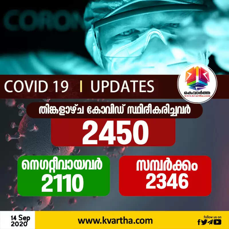Keywords: 2450 Corona case confirmed in Kerala Today, Thiruvananthapuram, News, Health, Health and Fitness, Hospital, Treatment, Kerala.