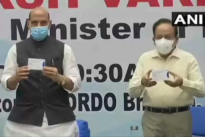 പുതുപ്രതീക്ഷ: ഡിആര്ഡിഒ വികസിപ്പിച്ച കോവിഡ് മരുന്ന് 2-ഡിജിയുടെ ആദ്യബാച്ച് പ്രതിരോധ മന്ത്രി രാജ്നാഥ് സിങ്ങും ആരോഗ്യമന്ത്രി ഹര്ഷ് വര്ധനും പുറത്തിറക്കി