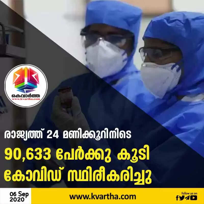 രാജ്യത്ത് 24 മണിക്കൂറിനിടെ 90,633 പേര്ക്കു കൂടി കോവിഡ്; ഇതുവരെയുള്ള ഏറ്റവും ഉയര്ന്ന പ്രതിദിന നിരക്ക്