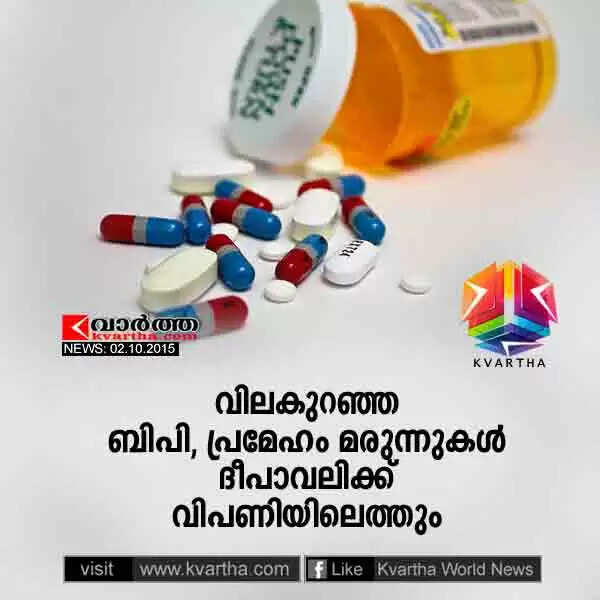 ന്യൂഡല്ഹി:(www.kvartha.com 02.10.2015) രക്തസമ്മര്ദ്ദം, പ്രമേഹം, ന്യൂമോണിയ തുടങ്ങിയ രോഗങ്ങള്ക്കുളള പുതിയ മരുന്നുകള് വിലക്കുറവില് വിപണിയിലെത്തും. നാഷണല് ഫാര്മസ്യൂട്ടിക്കല് പ്രൈസിങ് അഥോറിറ്റിയുടെ നേതൃത്വത്തിലാണ് മരുന്നുകള് ദീപാവലി വിപണിയില് എത്തുന്നത്.