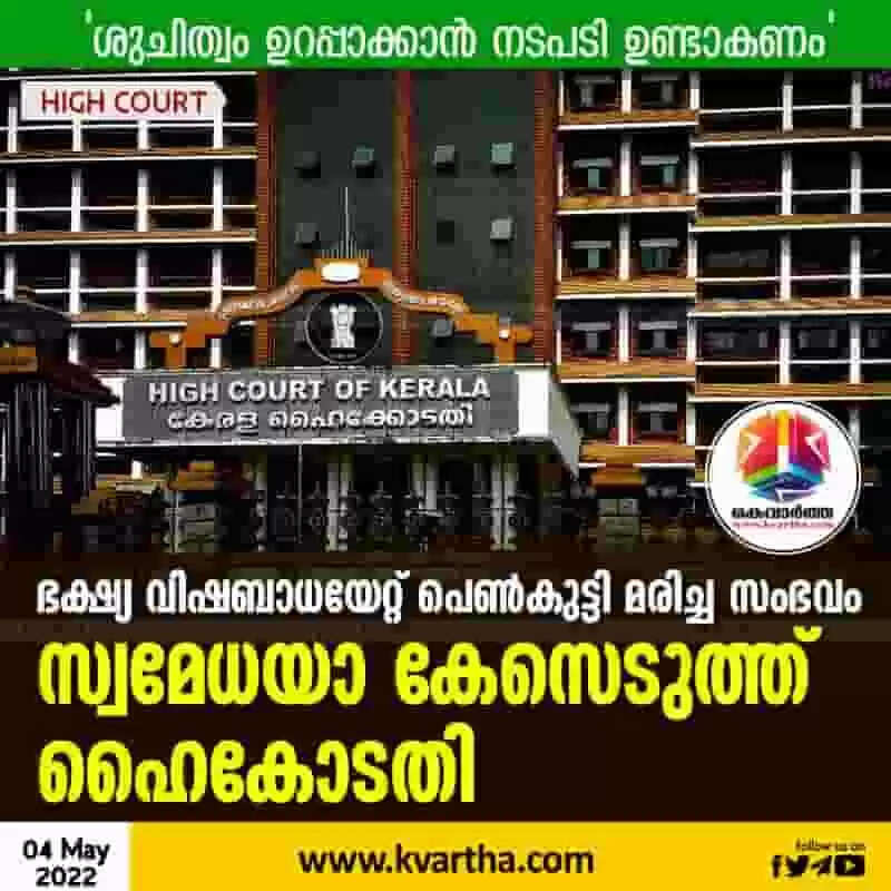 HC Intervenes | ഭക്ഷ്യ വിഷബാധയേറ്റ് പെണ്കുട്ടി മരിച്ച സംഭവം; സ്വമേധയാ കേസെടുത്ത് ഹൈകോടതി