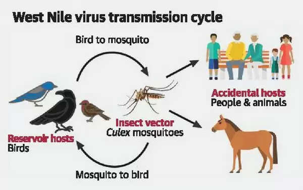 വെസ്റ്റ് നൈല് വൈറസ് മൂലമുണ്ടാകുന്ന പകര്ച്ചവ്യാധിയാണിത്. ക്യൂലക്സ് വിഭാഗത്തില്പ്പെട്ട കൊതുക് വഴിയാണ് രോഗം പകരുന്നത്. മനുഷ്യനില് നിന്നു മനുഷ്യരിലേക്ക് പകരില്ല. പക്ഷികളില് നിന്നു പക്ഷികളിലേക്കു പകരും. വൈറസ് ബാധയേല്ക്കുന്നവരില് 150ല് ഒരാള്ക്കു മാത്രമാണ് രോഗം മൂര്ച്ഛിക്കാറുള്ളത്.