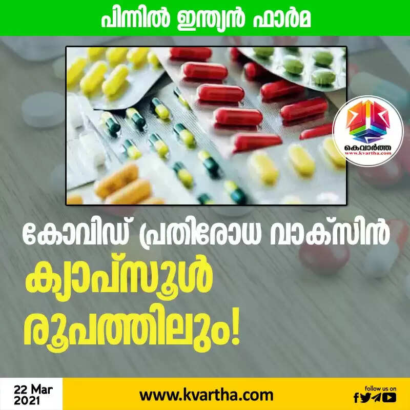 കോവിഡ് പ്രതിരോധ വാക്സിന്‍ ക്യാപ്സൂള്‍ രൂപത്തിലും! പിന്നില്‍ ഇന്ത്യന്‍ ഫാര്‍മ