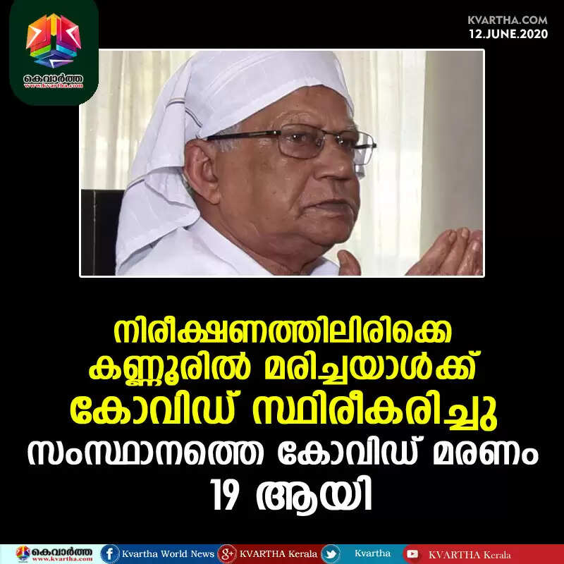 നിരീക്ഷണത്തിലിരിക്കെ കണ്ണൂരില്‍ മരിച്ചയാള്‍ക്ക് കോവിഡ് സ്ഥിരീകരിച്ചു; സംസ്ഥാനത്തെ കോവിഡ് മരണം 19 ആയി