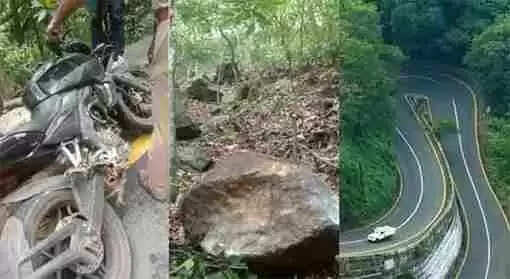 ദേഹത്തേക്ക് പാറക്കല്ല് അടര്ന്നുവീണ് അപകടം; താമരശ്ശേരി ചുരത്തില് ബൈക് യാത്രികരായ 2 പേര്ക്ക് പരിക്ക്