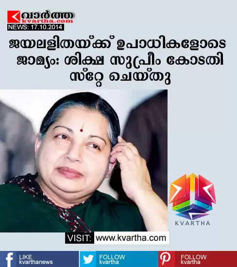 ജയലളിതയ്ക്ക് ഉപാധികളോടെ ജാമ്യം: ശിക്ഷ സുപ്രീം കോടതി സ്റ്റേ ചെയ്തു