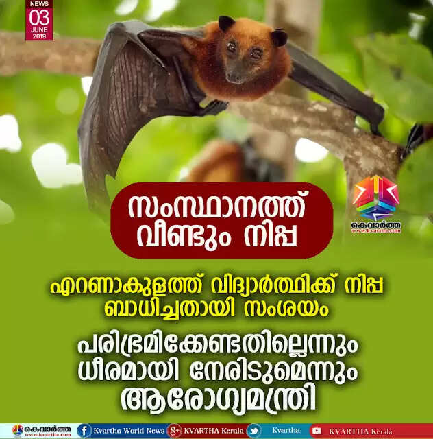 സംസ്ഥാനത്ത് വീണ്ടും നിപ്പ: എറണാകുളത്ത് വിദ്യാര്ത്ഥിക്ക് നിപ്പ ബാധിച്ചതായി സംശയം; പരിഭ്രമിക്കേണ്ടതില്ലെന്നും ധീരമായി നേരിടുമെന്നും ആരോഗ്യമന്ത്രി