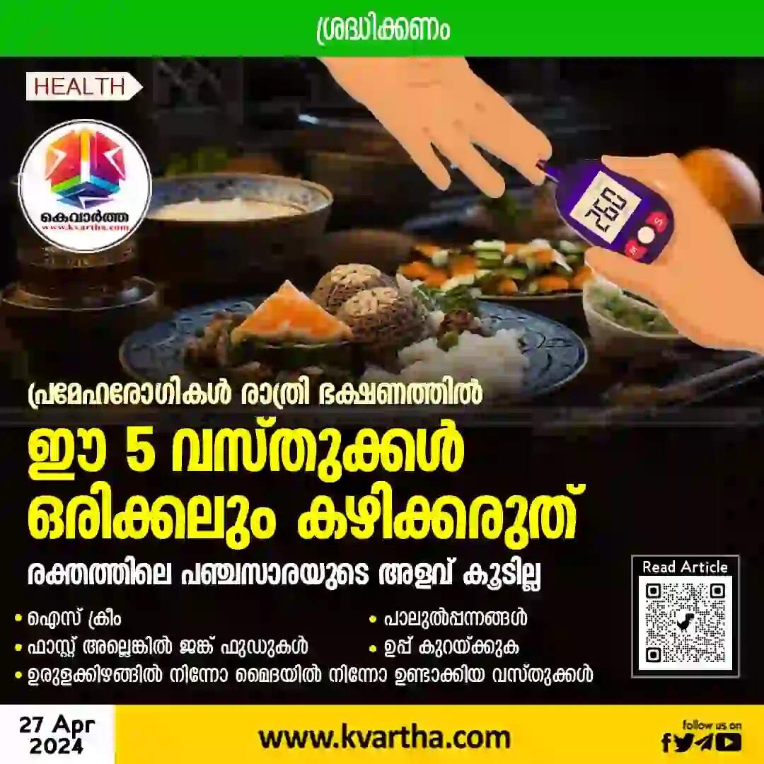 Diabetics | പ്രമേഹരോഗികള് ഒരിക്കലും രാത്രിയില് കഴിക്കാന് പാടില്ലാത്ത ഭക്ഷണങ്ങളെ കുറിച്ച് അറിയാം!