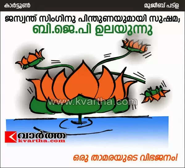 മുതിര്ന്ന നേതാവ് ജസ്വന്ത് സിംഗിന് ബാര്ബറി മണ്ഡലത്തില് സീറ്റ് നിഷേധിക്കപ്പെട്ടതിനെ തുടര്ന്ന് അദ്ദേഹം സ്വതന്ത്രനായി മത്സരിക്കുകയും അദ്ദേഹത്തെ ന്യായീകരിച്ച് സുഷമ സ്വരാജ് രംഗത്തുവരികയും ചെയ്തതോടെ പ്രശ്നം കൂടുതല് വഷളായിരിക്കുകയാണ്. എല്.കെ. അദ്വാനിയും സീറ്റിന്റെ കാര്യത്തില് പാര്ട്ടിയുമായി അല്പം മുഷിഞ്ഞിട്ടുണ്ട്. മോഡിയുടേയും സുഷമ സ്വരാജിന്റേയും രാജ്നാഥ് സിംഗിന്റേയും നേതൃത്വത്തില് പാര്ട്ടി തിരഞ്ഞെടുപ്പിനെ നേരിടുമ്പോള് ചില അന്തഛിദ്രങ്ങള് അണികള്ക്കിടയില് രൂപപ്പെട്ടിട്ടുണ്ട്. ഇതിനെക്കുറിച്ചാണ് മുജീബ് പട്ളയുടെ കാര്ട്ടൂണ്.