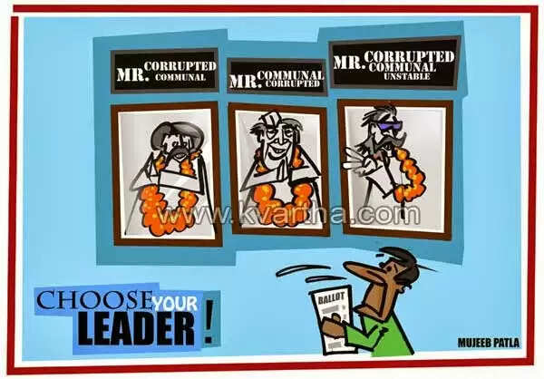 Or, for decades, how badly a voter is forced to cast his vote to wrong person. No eligible person to occupy their leader's spot. Though, SC has allowed voters to cast a "none-of-the-above", more than a solution, this gives a count of "how helpless/hopeless our democracy is turning to".  Cartoon from Mujeeb Patla depicts the scene.