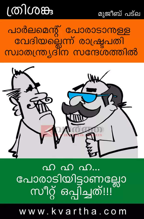 പാര്ലമെന്റ് പോരാടാനുള്ള വേദിയല്ലെന്ന് രാഷ്ട്രപതി സ്വാതന്ത്ര്യദിന സന്ദേശത്തില്...ഹഹഹ... പോരാടിയിട്ടാണല്ലോ സീറ്റ് ഒപ്പിച്ചത് !!!