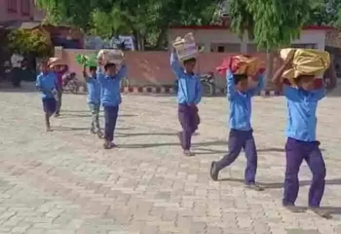 Keywords: Patna, News, National, Crime, Teacher, Suspension, Students, Principal, Children, Bihar students forced to carry stacks of books on head from govt office to school, headmasters suspended.