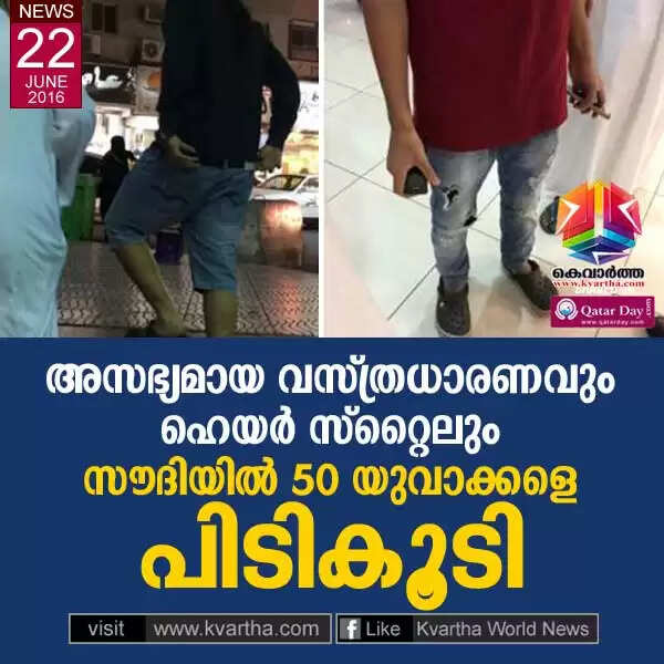 റിയാദ്: (www.kvartha.com 21.06.2016) സാംസ്ക്കാരികമായി സ്വീകാര്യമല്ലാത്ത വസ്ത്രം ധരിച്ച 50 യുവാക്കളെ സുരക്ഷ ഉദ്യോഗസ്ഥര് പിടികൂടി. ഇവരുടെ ഹെയര് സ്റ്റൈലും ധാര്മ്മീകമല്ലെന്ന് ഉദ്യോഗസ്ഥര്.