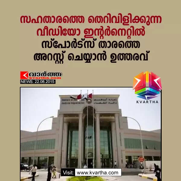 അബൂദാബി: (www.kvartha.com 22.08.2015) സോഷ്യല്‍ മീഡിയയില്‍ പ്രത്യക്ഷപ്പെട്ട വീഡിയോ വിവാദമായതോടെ അബൂദാബിയിലെ പ്രമുഖ സ്‌പോര്‍ട്‌സ് താരത്തെ അറസ്റ്റ് ചെയ്യാന്‍ കോടതി ഉത്തരവ്. കായിക താരം സഹതാരത്തെ തെറിവിളിക്കുന്ന വീഡിയോ സോഷ്യല്‍ മീഡിയയില്‍ വന്‍ പ്രചാരം നേടിയതോടെയാണ് ഉത്തരവ്.