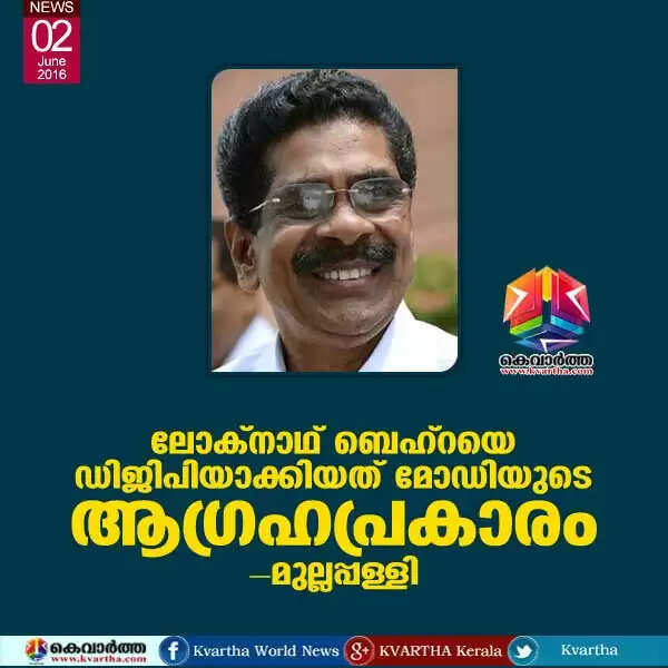 ലോക്‌നാഥ് ബെഹ്‌റയെ ഡിജിപിയാക്കിയത് മോഡിയുടെ ആഗ്രഹപ്രകാരം: മുല്ലപ്പള്ളി