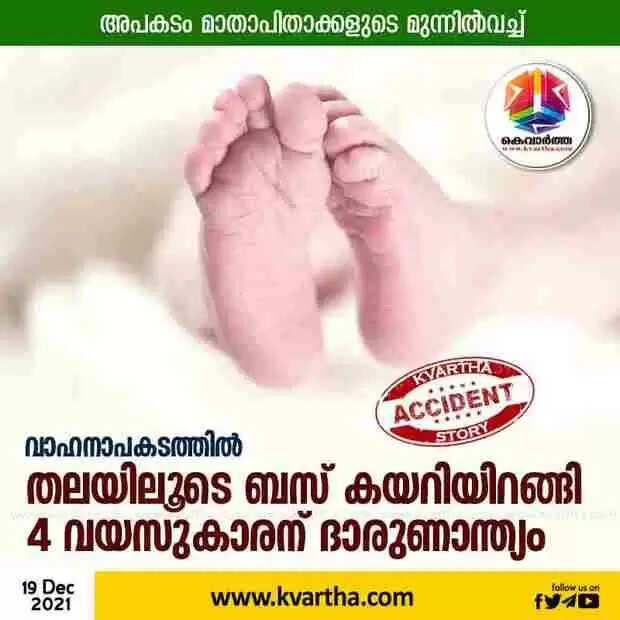 വാഹനാപകടത്തില് തലയിലൂടെ ബസ് കയറിയിറങ്ങി 4 വയസുകാരന് ദാരുണാന്ത്യം; അപകടം മാതാപിതാക്കളുടെ മുന്നില്വച്ച്