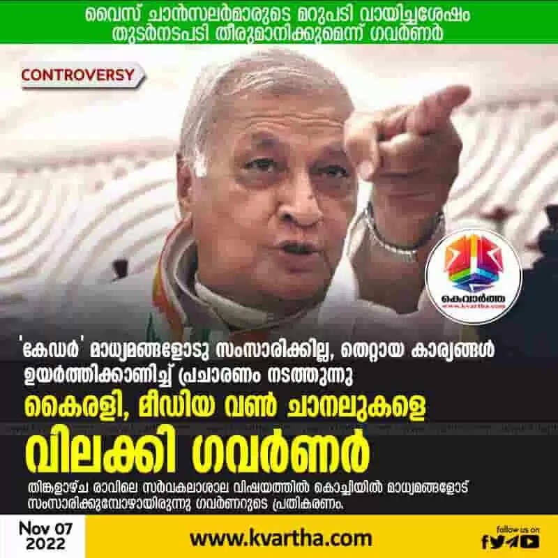 Keywords: Governor again bars 2 TV channels from covering his reaction, Kochi, Governor, Media, University, Criticism, Kerala.