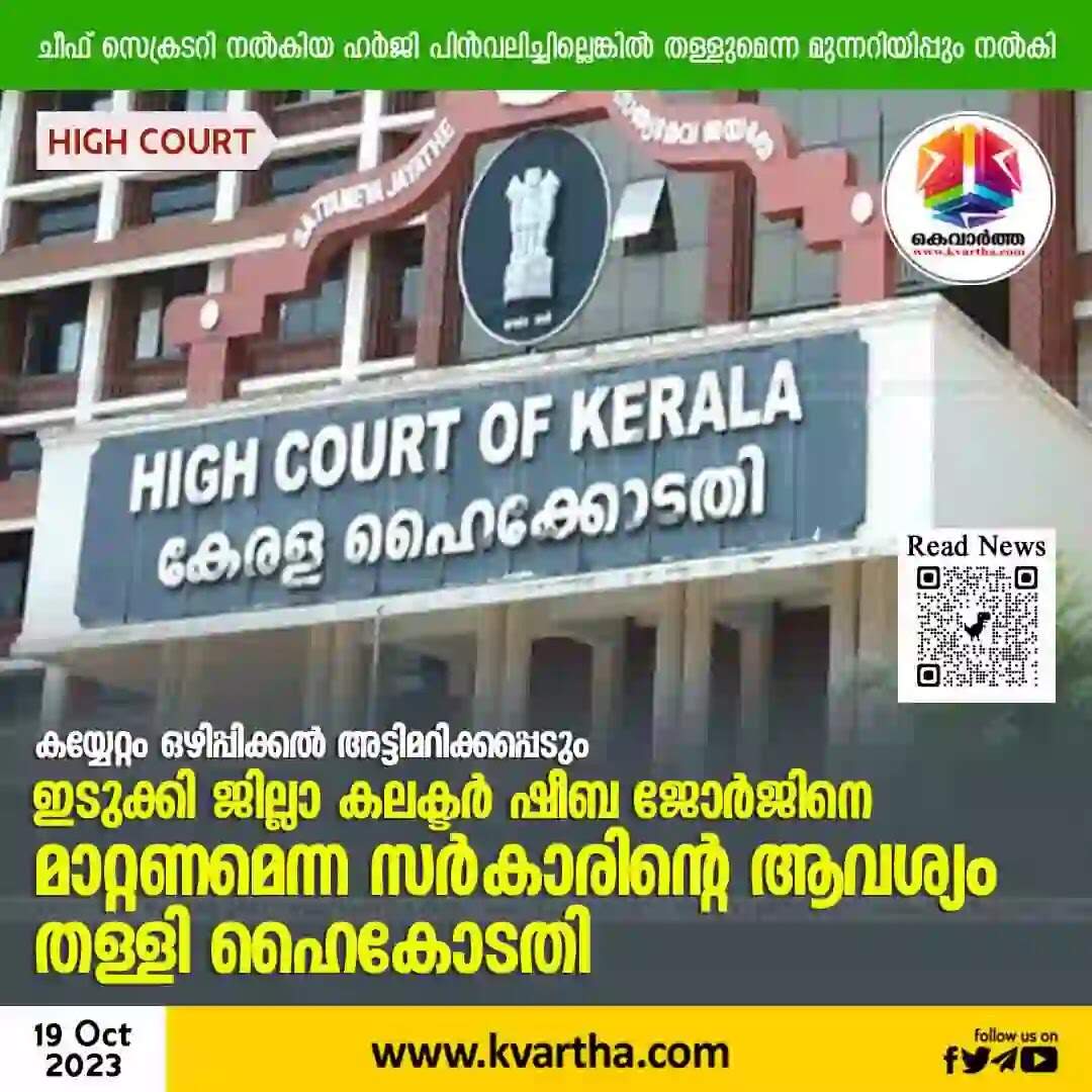 Keywords: High Court rejected government's request to transfer Idukki District Collector Sheeba George, Idukki, News, High Court, Warning, Chief Secretary, District Collector, CPM, Petition, Politics, Kerala.