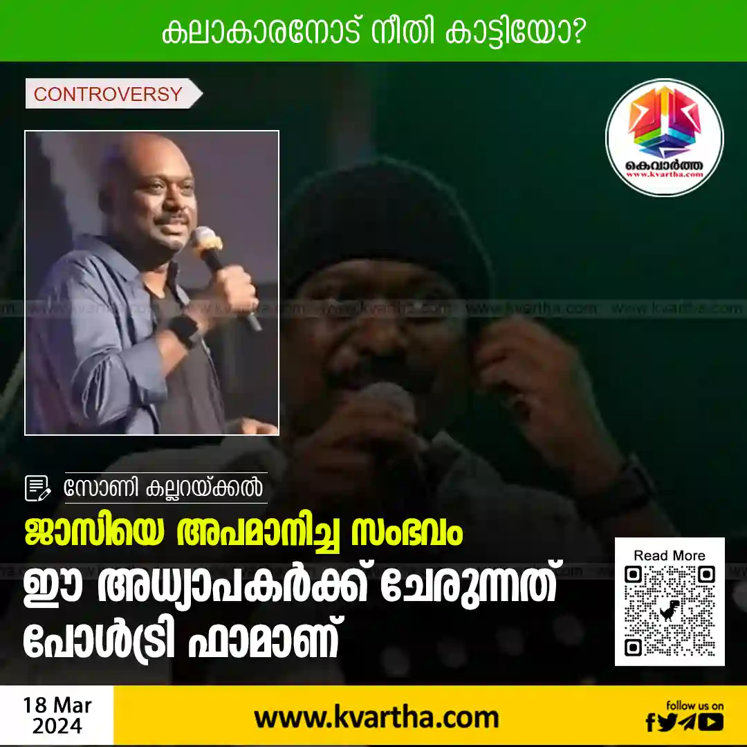 (KVARTHA) കേരളത്തിലെ ഒരു കോളേജിൽ പ്രശസ്ത ഗായകൻ ജാസി ഗിഫ്റ്റിൻ്റെ ഗാനമേള തടസപ്പെടുത്തിയത് ഇപ്പോൾ വലിയ വിവാദമായിരിക്കുകയാണ്. എറണാകുളം ജില്ലയിലെ സെൻ്റ് പീറ്റേഴ്സ് കോളേജിൽ വെച്ച് നടന്ന ഒരു ചടങ്ങിൽ ജാസി പാടുകയായിരുന്നു. പെട്ടന്ന് കോളജിൻ്റെ പ്രിൻസിപ്പൽ സ്റ്റേജിലേയ്ക്ക് കയറിവരികയും ജാസിയുടെ കയ്യിൽനിന്ന് മൈക്ക് പിടിച്ചുവാങ്ങുകയും ആയിരുന്നു. ഗാനമേള തടസപ്പെടുത്തിയതിനെക്കുറിച്ച് പ്രിൻസിപ്പൽ പ്രതികരിച്ചത് ഇങ്ങനെയാണ്: 'ഇവിടെ പാടാനുള്ള അനുമതി ജാസി ഗിഫ്‌റ്റിന് മാത്രമേയുള്ളൂ. അദ്ദേഹത്തിൻ്റെ കൂടെ മറ്റൊരു ഗായകൻ കൂടി പാടുന്നുണ്ട്. അത് ഈ കലാലയത്തിൽ അനുവദനീയമല്ല'.