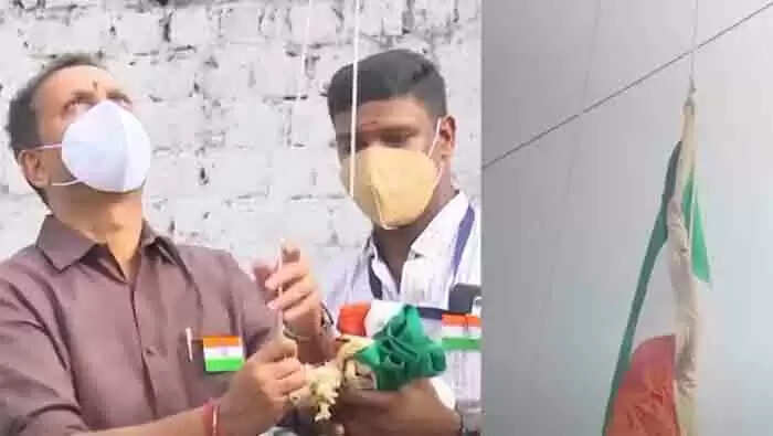 ചരടില്‍ കോര്‍ത്ത പതാക സുരേന്ദ്രന്‍ ഉയര്‍ത്തി തുടങ്ങി. രണ്ടടിയോളം ഉയര്‍ന്നപ്പോള്‍ പച്ചനിറം മുകളിലും കുങ്കുമം താഴെയുമായിരുന്നു. തിരിഞ്ഞു പോയെന്ന് മനസിലായതോടെ പതാക വലിച്ചുതാഴ്ത്തി. ഒടുവില്‍ വീണ്ടും ഉയര്‍ത്തി പ്രശ്‌നം പരിഹരിച്ചു. ദൃശ്യങ്ങള്‍ പ്രചരിച്ചതോടെ സുരേന്ദ്രനെതിരെ വിമര്‍ശനങ്ങള്‍ ഉയര്‍ന്നിരുന്നു.