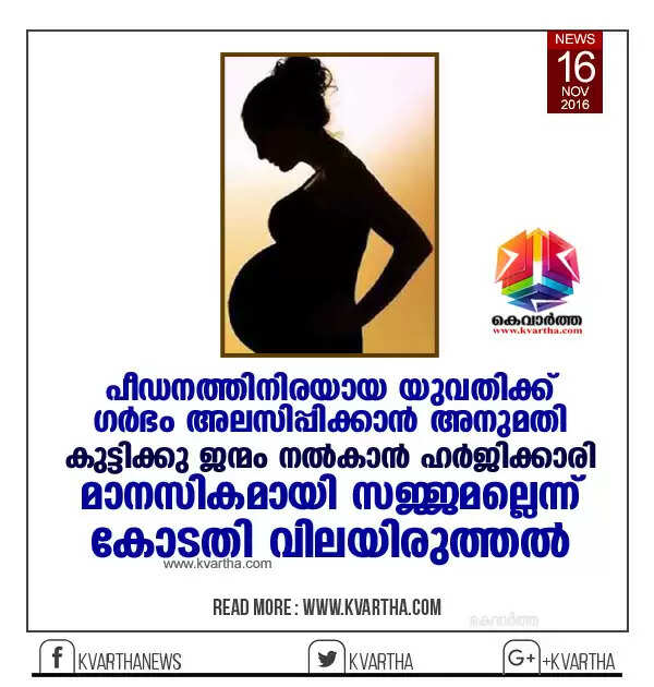 പീഡനത്തിനിരയായ യുവതിക്ക് ഗര്‍ഭം അലസിപ്പിക്കാന്‍ അനുമതി; കുട്ടിക്കു ജന്മം നല്‍കാന്‍ ഹര്‍ജിക്കാരി മാനസികമായി സജ്ജമല്ലെന്ന് കോടതി വിലയിരുത്തൽ