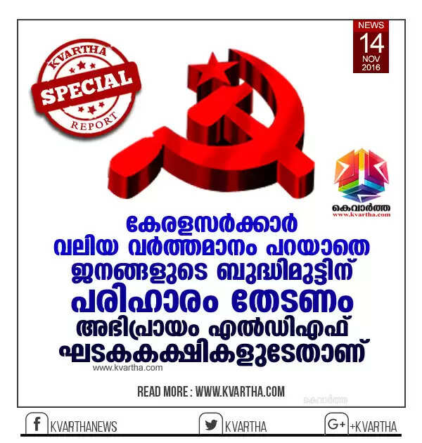 നോട്ടുകള് പിന്വലിക്കുന്നതായി പ്രധാനമന്ത്രിയുടെ പ്രസ്താവന വന്ന പിന്നാലെ ധനമന്ത്രി ടി എം തോമസ് ഐസക് ടിവി ചാനലുകള്ക്ക് നല്കിയ പ്രതികരണം, പിറ്റേദിവസം നിയമസഭയില് ധനമന്ത്രി നടത്തിയ പ്രസ്താവന, പിന്നീട് മുഖ്യമന്ത്രി പിണറായി വിജയനും ധനമന്ത്രിയും നടത്തിയ പ്രതികരണങ്ങള് എന്നിവയൊന്നും കേരളത്തിലെ ജനങ്ങളുടെ നെട്ടോട്ടത്തിന് സംസ്ഥാനതലത്തില് ഉണ്ടാക്കാവുന്ന പരിഹാരങ്ങളൊന്നും നിര്ദേശിക്കുന്ന തരത്തിലായില്ല എന്നാണ് സിപിഐയുടെയും മറ്റു ചെറുകക്ഷികളുടെയും പൊതുവികാരം.
