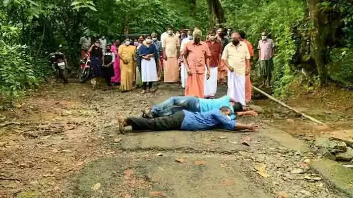 ഒരു റോഡിന്റെ ശാപമോക്ഷത്തിനായി ശയനപ്രദക്ഷിണം നടത്തിയും മുട്ടിലിഴഞ്ഞും നാട്ടുകാരുടെ പ്രതിഷേധം