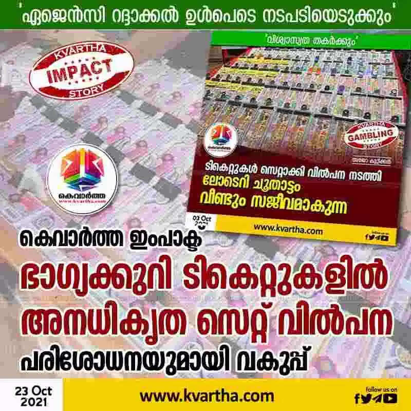 കെവാർത്ത ഇംപാക്ട്; ഭാഗ്യക്കുറി ടികെറ്റുകളില്‍ അനധികൃത സെറ്റ് വില്‍പന: പരിശോധനയുമായി വകുപ്പ്