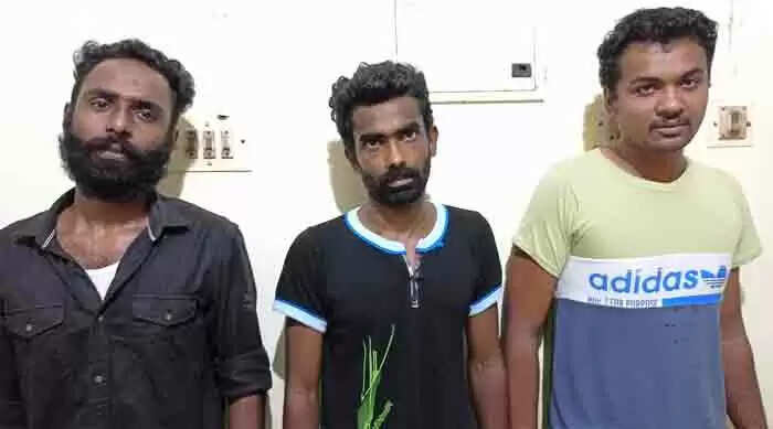 ഒന്നാം പ്രതി കഴക്കൂട്ടം വില്ലേജില് മണക്കാട്ട് വിളാകം, ജസീലാ മന്സിലില് ജാസിംഖാന് (വയസ് -28), രണ്ടാം പ്രതി വെയിലൂര് വില്ലേജില് മംഗലപുരം എംകെ നഗറില് ബൈദുനൂര് ചാരുമൂട് വീട്ടില് അജ്മല് (വയസ് 25), മൂന്നാം പ്രതി മേല് തോന്നയ്ക്കല് വില്ലേജില് കല്ലൂര് ആര് എന് കോടേജില് മുഹമ്മദ് റാസി (വയസ് 23) എന്നിവരാണ് പിടിയിലായത്.