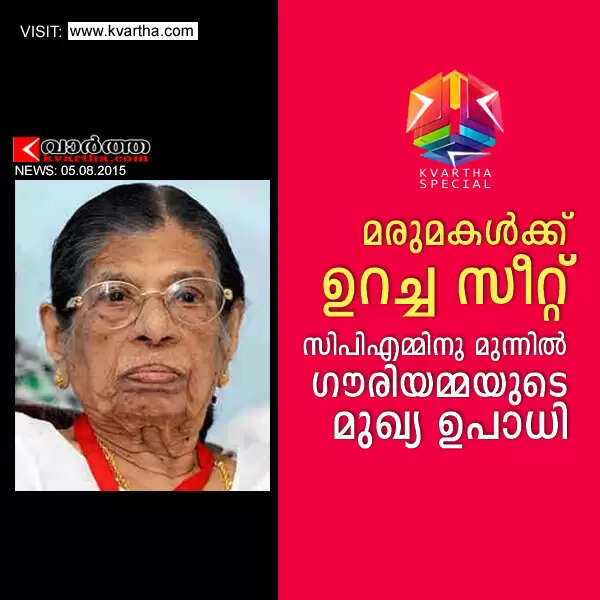 മരുമകള്ക്ക് ഉറച്ച സീറ്റ്; സിപിഎമ്മിനു മുന്നില് ഗൗരിയമ്മയുടെ മുഖ്യ ഉപാധി