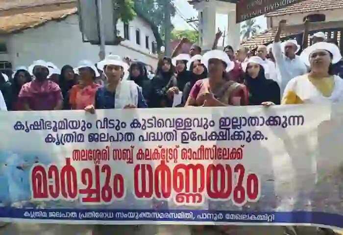 Protest | പാനൂരില് കൃത്രിമ ജലപാതാ വിരുദ്ധ സമരം ശക്തമായി; പ്രതിഷേധ മാര്ചും ധര്ണയുമായി സംയുക്ത സമരസമിതി