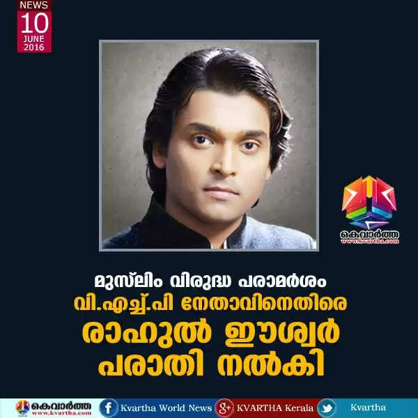 മുസ്ലിം വിരുദ്ധ പരാമര്ശം: വി.എച്ച്.പി നേതാവിനെതിരെ രാഹുല് ഈശ്വര് പരാതി നല്കി