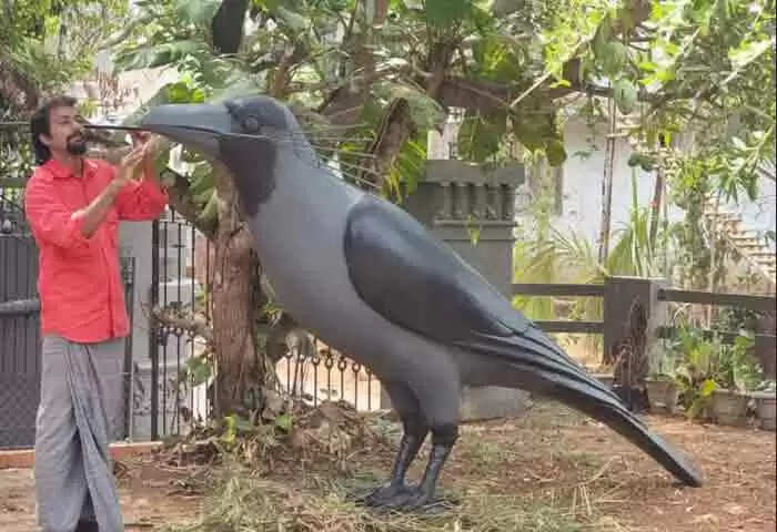 Crow | ശുചിത്വ സന്ദേശവുമായി പയ്യന്നൂരില്‍ കൂറ്റന്‍ കാക്കയുടെ ശില്‍പമൊരുങ്ങി