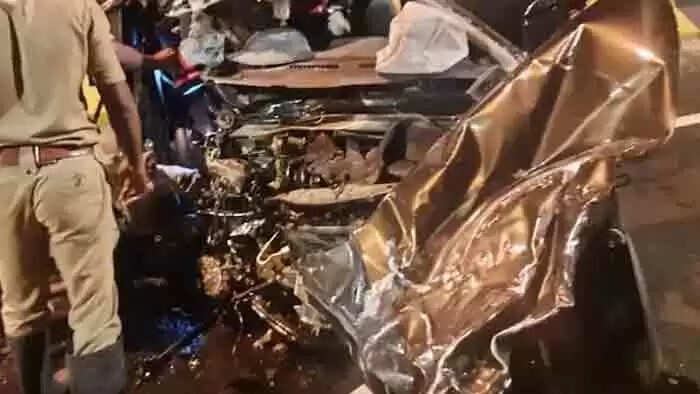 ചൊവ്വാഴ്ച പുലര്ചെ രണ്ട് മണിയോടെ ബാപ്പു വൈദ്യര് ജംഗ്ഷന് ഭാഗത്തായിരുന്നു അപകടം. കാറുകള് ഏകദേശം പൂര്ണമായും തകര്ന്ന നിലയിലാണ്. പൊലീസും അഗ്നിശമന സേനയും കാര് വെട്ടിപ്പൊളിച്ചാണ് നാല് പേരെയും പുറത്തെടുത്തത്.