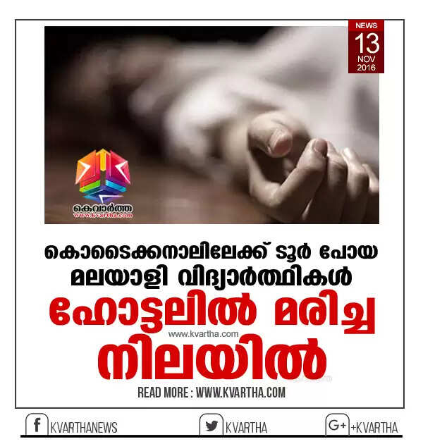 കൊടൈക്കനാലിലേക്ക് ടൂര് പോയ മലയാളി വിദ്യാര്ത്ഥികള് ഹോട്ടലില് മരിച്ച നിലയില്