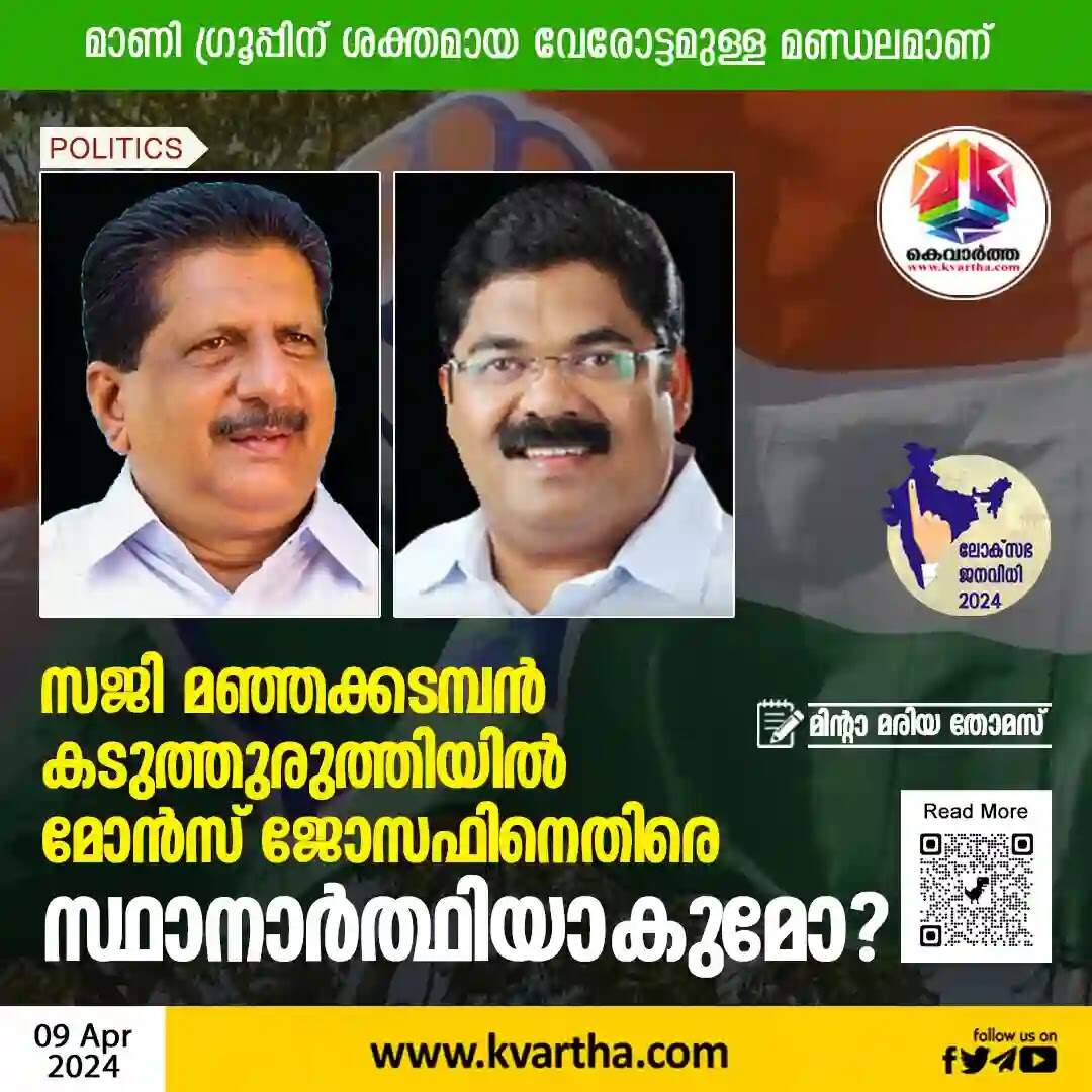 Keywords: News, Malayalam News, Kottayam, Lok Sabha Election, Congress, Politics, UDF, Saji Manjakadambil, Will Saji Manjakadambil be a candidate against Mons Joseph in Kaduthuruthy?