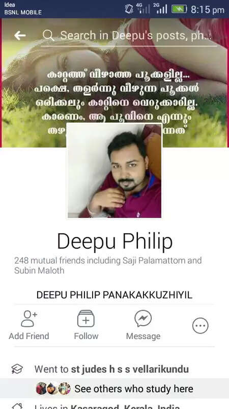 ഇതിനിടെയാണ് അയല്വാസിയുടെ ഫോണിലൂടെ ദീപുവിന്റെ ഫേസ്ബുക്ക് പ്രൊഫൈല് ബേബി കണ്ടത്. ഇതേ തുടര്ന്ന് വെള്ളരിക്കുണ്ട് പോലീസ് സ്റ്റേഷനിലെത്തി പോലീസിനോടും നാട്ടുകാരോടും ദീപുവിനെ കണ്ടെത്തിത്തരാന് സഹായം അഭ്യര്ത്ഥിച്ചിരിക്കുകയാണ് യുവതി.
