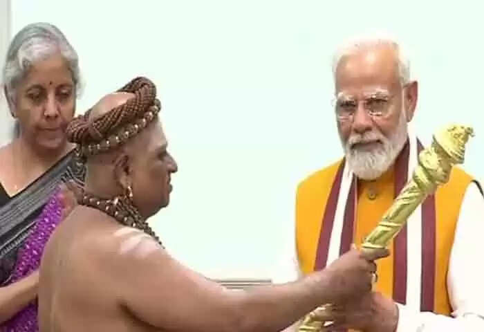 Sengol | പുതിയ പാര്ലമെന്റ് മന്ദിരം: ഉദ് ഘാടനത്തിന് മുമ്പ് സ്വര്ണചെങ്കോല് പ്രധാനമന്ത്രി നരേന്ദ്ര മോദിക്ക് പൂജാരിമാര് കൈമാറി