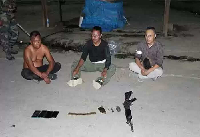 ഇംഫാലില് സിറ്റി കണ്വെന്ഷന് സെന്റര് പ്രദേശത്ത് സംശയകരമായ നിലയില് കാറില് നാലുപേര് യാത്ര ചെയ്യുന്നതായുള്ള വിവരം ലഭിച്ചതിനെ തുടര്ന്ന് സുരക്ഷാസേന കാര് തടഞ്ഞുനിര്ത്തി പരിശോധിക്കുന്നതിനിടെ യാത്രക്കാര് കടന്നുകളഞ്ഞു. തു9*-ടര്ന്ന് കാറിലുണ്ടായിരുന്ന മൂന്നു പേരെ സേന പിന്നാലെ ഓടി പിടികൂടുകയായിരുന്നു. തുടര്ന്ന് നടത്തിയ പരിശോധനയില് ഇവരില്നിന്നു ചൈനീസ് ഹാന്ഡ് ഗ്രനേഡ്, ഡിറ്റണേറ്റര് എന്നിവയും ഇന്സാസ് റൈഫിള് ഉള്പെടെയുള്ളവയും കണ്ടെടുക്കുകയായിരുന്നു.