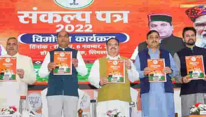 BJP manifesto | 'അധികാരത്തിലെത്തിയാൽ ഏകീകൃത സിവിൽ കോഡ് നടപ്പിലാക്കും, വഖഫ് സ്വത്തിൽ നടപടി, 8 ലക്ഷം തൊഴിലവസരങ്ങൾ'; വാഗ്ദാനങ്ങളുമായി ഹിമാചലിൽ ബിജെപി പ്രകടനപത്രിക പുറത്തിറക്കി