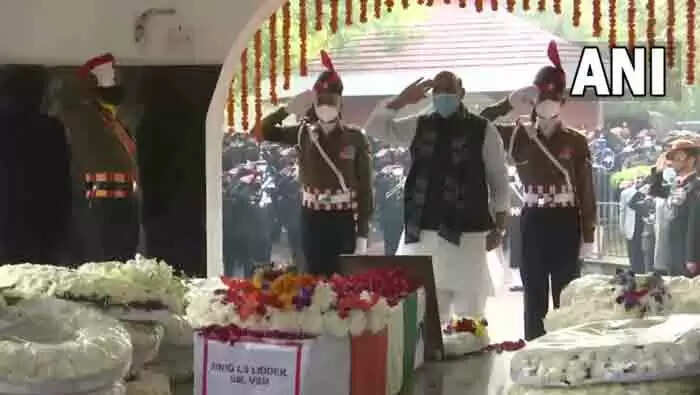 ഡെല്‍ഹി ബ്രാര്‍ സ്‌ക്വയറില്‍ നടന്ന ചടങ്ങില്‍ പ്രതിരോധമന്ത്രി രാജ് നാഥ് സിങ്ങ്, ഹരിയാന മുഖ്യമന്ത്രി മനോഹര്‍ ലാല്‍ ഖടര്‍, കരസേന മേധാവി എംഎം നരവാണെ, നാവികസേനാ മേധാവി ചീഫ് അഡ്മിറല്‍ ആര്‍ ഹരികുമാര്‍, വ്യോമസേനാ മേധാവി ചീഫ് മാര്‍ഷല്‍ വിആര്‍ ചൗധരി, എന്‍എസ്എ അജിത് ഡോവല്‍ ഉള്‍പെടെയുള്ളവര്‍ ആദരാഞ്ജലി അര്‍പിച്ചു.